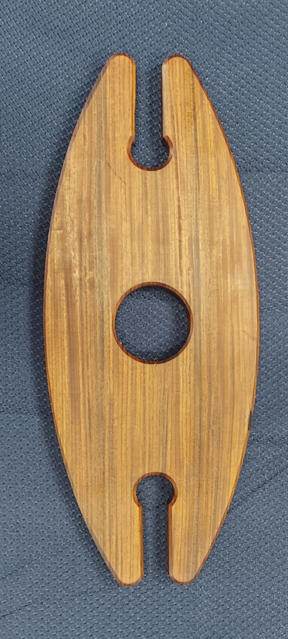 The perfect gift for any wine drinker. What better way to compliment a bottle of wine than a convenient way to share with a friend. This sturdy 2 Glass Caddy will hold 2 wine glasses when placed on the neck of the wine bottle. This particular Caddy is fashioned from Bolivian Rosewood (Morado).
