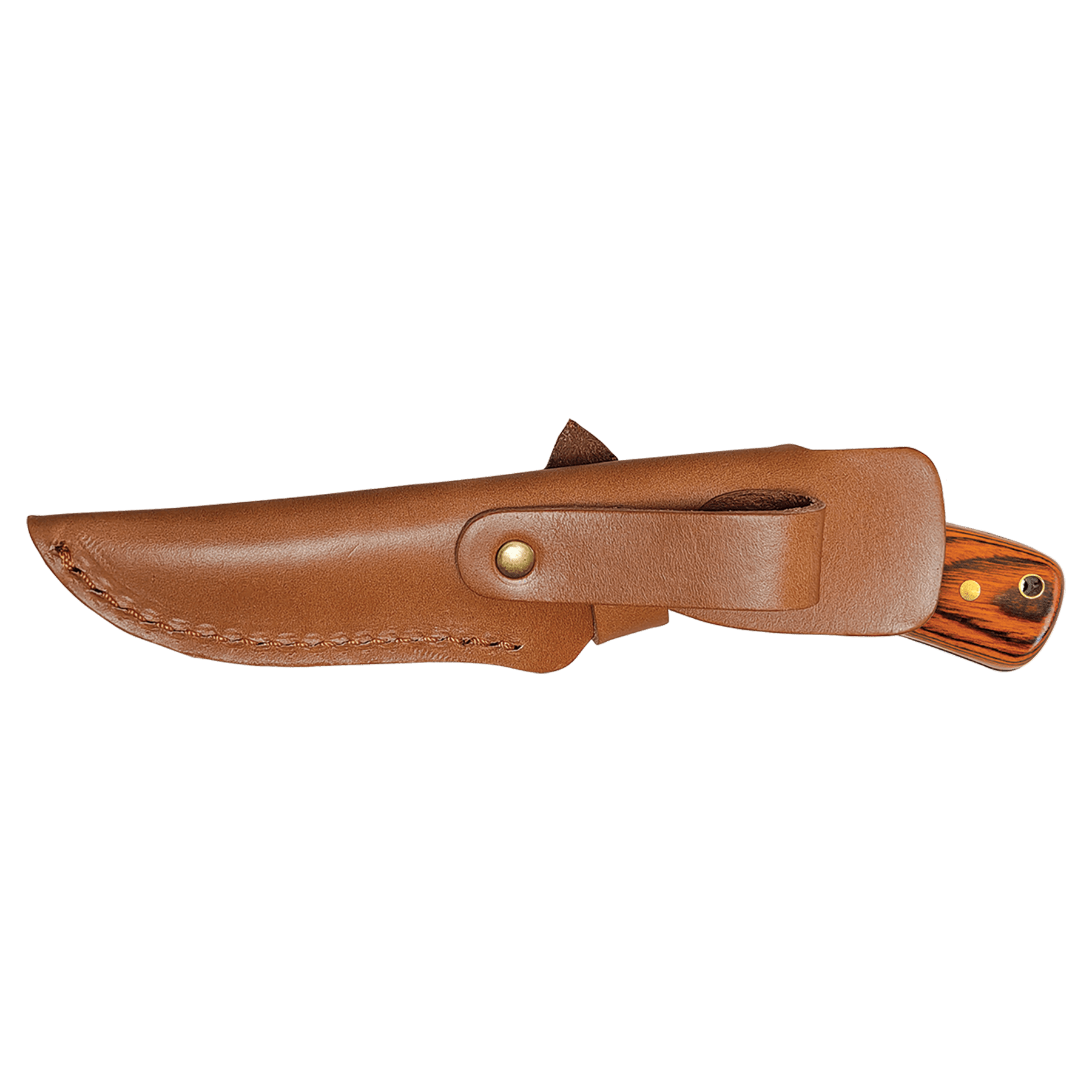 Bison River 7 3/4" Fixed Blade Wood Knife with Leather Sheath