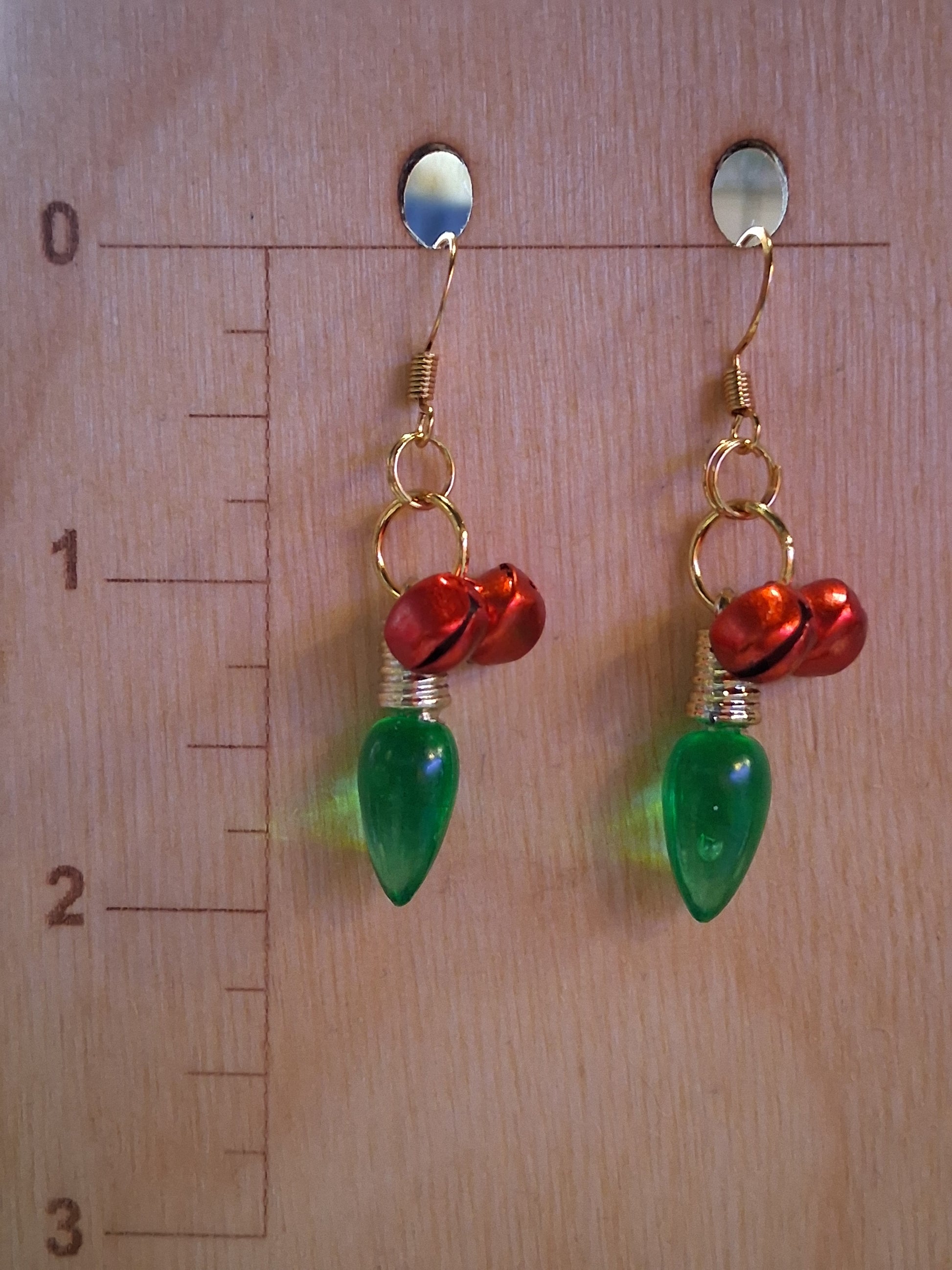 Christmas Lights & Jingle Bells - gold plated, nickel free, red bells, green light